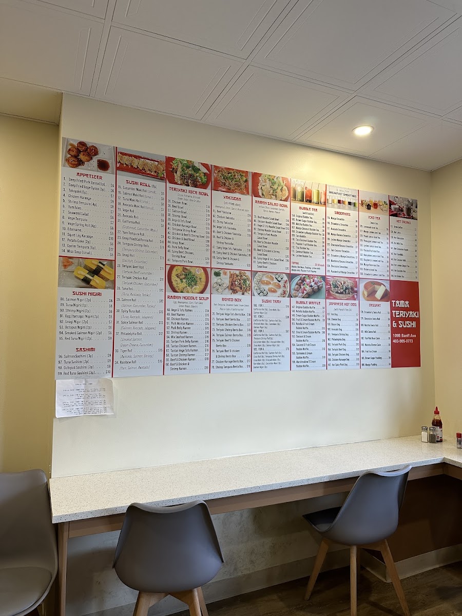 Welcome to Tama Teriyaki, a culinary gem nestled in the heart of Banff at 109 Banff Ave, Alberta. This delightful restaurant specializes in authentic Asian cuisine, featuring an enticing menu filled with delicious ramen and sushi rolls that have captivated visitors. Diners rave about the Tiger and Rainbow Rolls, which exemplify the freshness and quality of their offerings.
